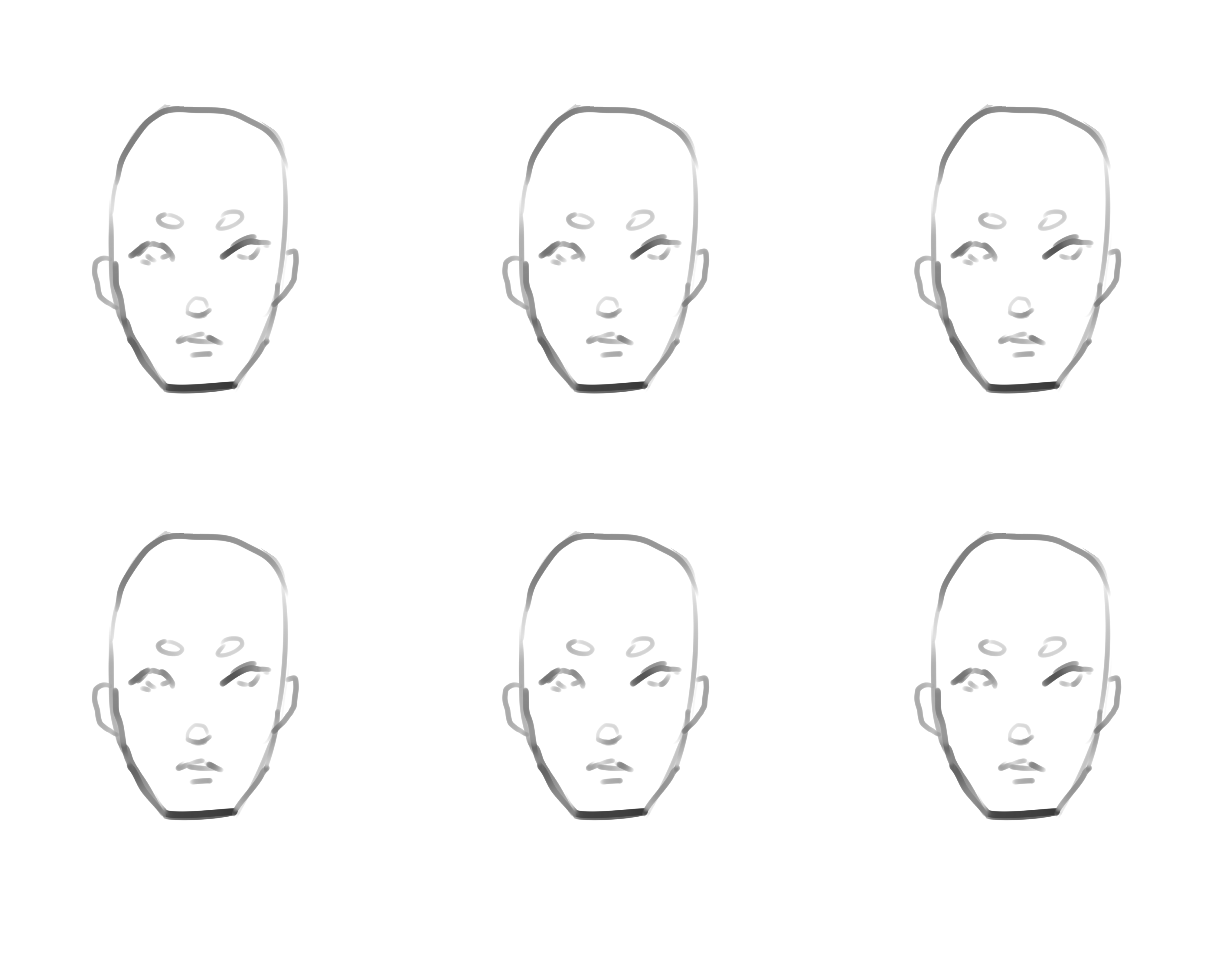 Je weiter unten er ist, desto länger und je weiter oben, desto rundlicher oder breiter wird das gesicht deiner figur.